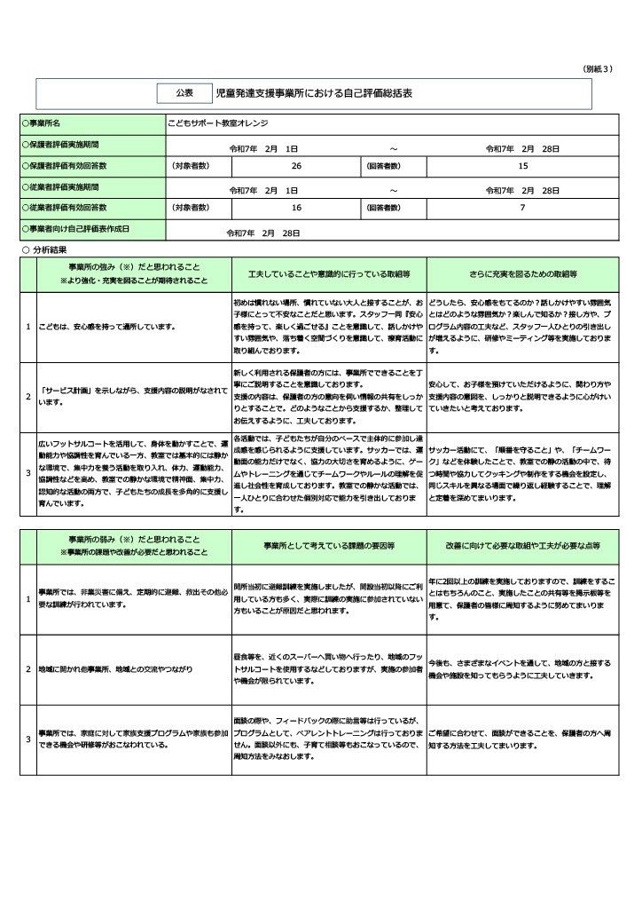 児童発達支援事業 自己評価表について